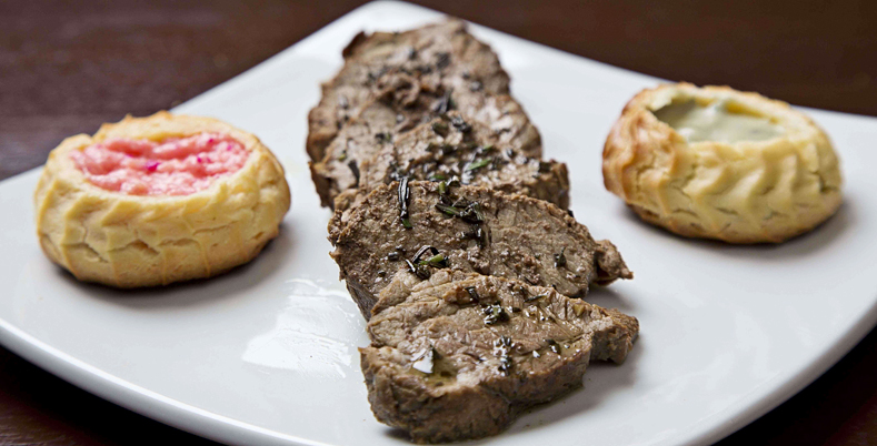 Filé ao alecrim com molho de queijo gorgonzola e queijo do reino