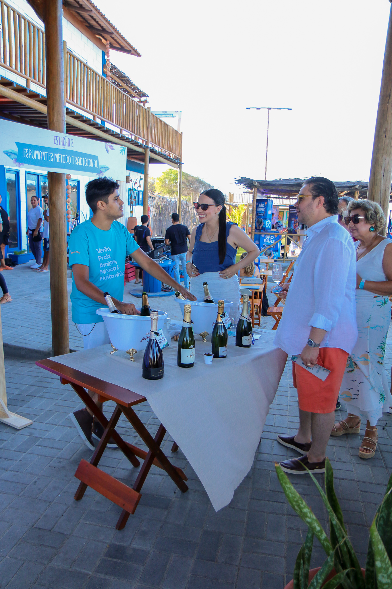 Segundo Alexandre, o nome “Wine Beach” reflete o espírito da proposta: uma celebração dos vinhos de verão, com uma grande degustação guiada. São mais de 80 rótulos disponíveis, distribuídos em dez estações temáticas, reunindo espumantes (método tradicional e charmat), brancos leves, aromáticos e encorpados, além de tintos para todos os gostos, dos mais leves aos mais estruturados.