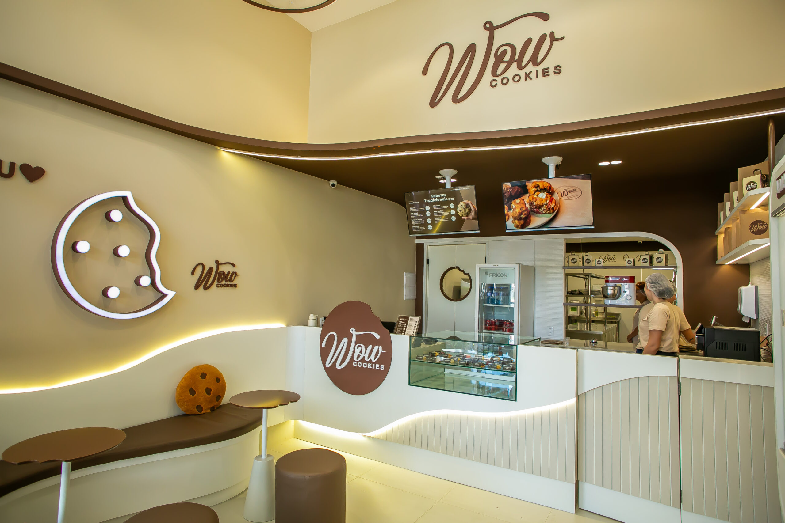 No cardápio, a Wow Cookies inaugurou a nova unidade com o menu completo. Atualmente, são 24 sabores fixos e três rotativos que se alternam ao longo do ano. Entre os campeões de vendas, estão Red Velvet, Ninho com Nutella e Kinder Bueno.