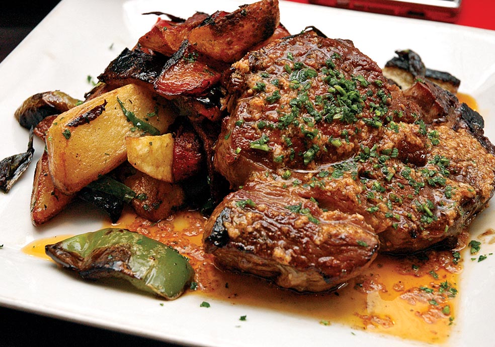 Nesse restaurante, pedi uma salada de salmão defumado com queijo brie com mix de alface e vinagre balsâmico de entrada, e um Raviole relleno de espinaca y ricota com salsa y queso parmesano para o prato principal. Tudo muito delicioso. Me chamou atenção um prato que foi servido ao lado da minha mesa, um bife de chorizo marinado em hierbas, salsa criolla y compacto de papa. Parecia muito bom, e eu, um carnívoro assumido, fiquei ‘com água na boca’.