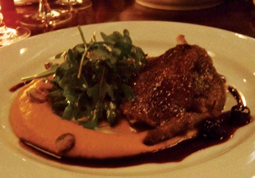 O peixe estava soberbo e se desmanchava ao menor contato com a boca. Fiquei impressionado, pois eu nunca tinha comido um salmão com uma textura tão “aveludada” (permita-me dizer assim) e de sabor inesquecível, servido praticamente selado com o interior quase cru. É para comer de joelhos. E para não fazer feio, harmonizei esse prato com um vinho tinto Pinot Noir.