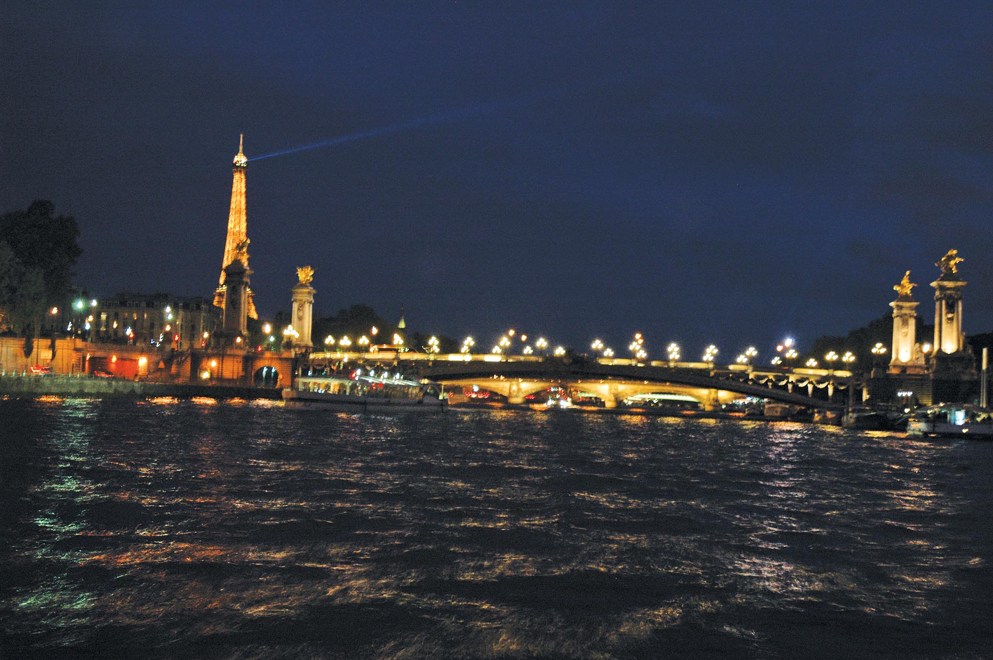 E o que falar do tradicional passeio de barco pelo Rio Sena? Se for fazer, que o faça com estilo e classe. Existem vários tipos de embarcações, mas se você quer um pouco de glamour, faça o passeio da famosa empresa Batoux Mouches com jantar a bordo. O passeio dura quase duas horas e, enquanto se aprecia o belíssimo visual de Paris, os passageiros vão degustando um menu completo com direito a garrafa de champanhe, garrafa de vinho, petiscos, entrada, prato principal, prato de queijo, sobremesa e café. No final do passeio, o barco passa em frente à Torre Eiffel, que, iluminada, enche os nossos corações de alegria com toda a sua beleza.