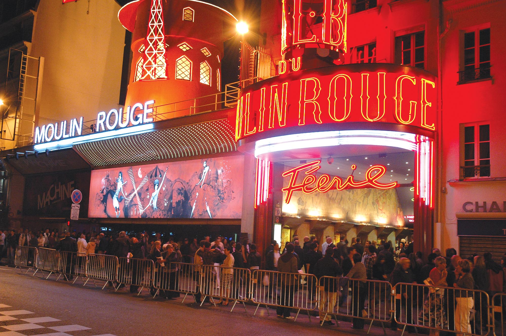 O Moulin Rouge continua atraindo centenas de turistas para assistir aos três shows que acontecem todas as noites a partir das 19h. Símbolo da noite parisiense, o lugar faz fama desde que abriu as portas, em 1889, e serviu de inspiração para artistas com o Touluse-Lautrec. Aliás, existe um belo quadro pintado por ele no salão de entrada.